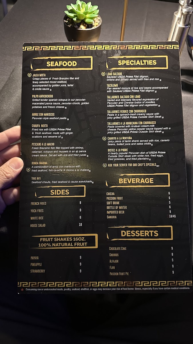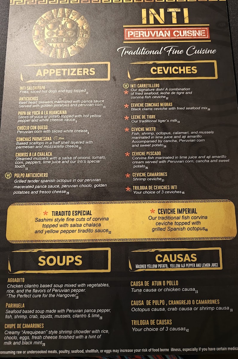 Our signature dish! A combination of fried seafood, leche de tigre and corvina fish ceviche.